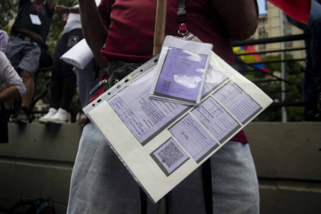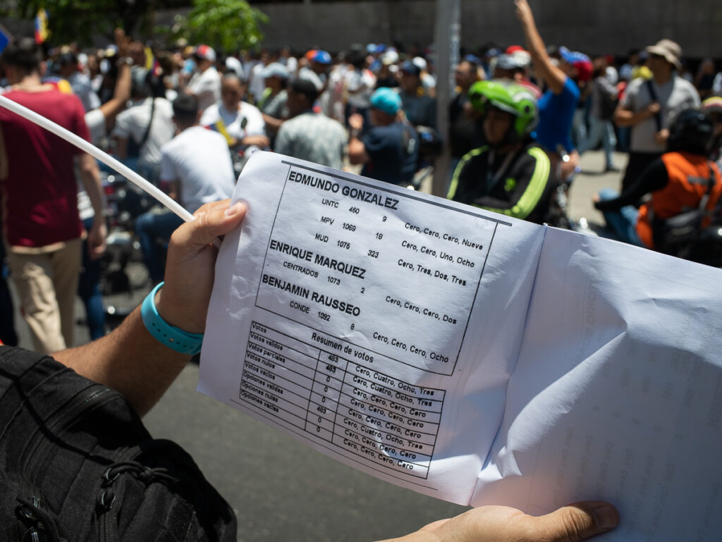 Mientras María Corina Machado se abría paso entre la multitud que colmaba parte de la avenida Francisco de Miranda, las personas levantaban sus manos y agitaban copias de las actas electorales. En todas, por cierto, el vencedor era Edmundo González Urrutia.