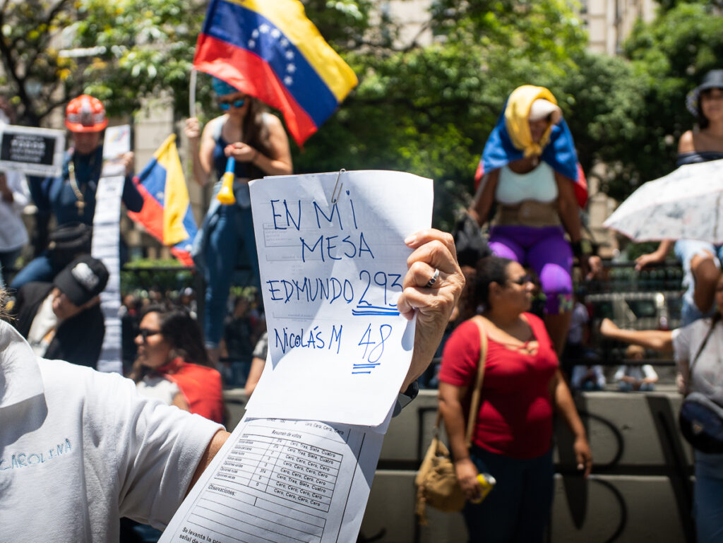 “No hay forma que puedan presentar un fraude de tal magnitud. Tenemos las pruebas de que ganamos y tenemos que cobrar”, dijo una manifestante a Efecto Cocuyo. Ella, como muchas otras personas, fue testigo de mesa y puede dar fe de las irregularidades ocurridas en el proceso de conteo de votos, pero también se mostró confiada en que la victoria opositora fue aplastante.