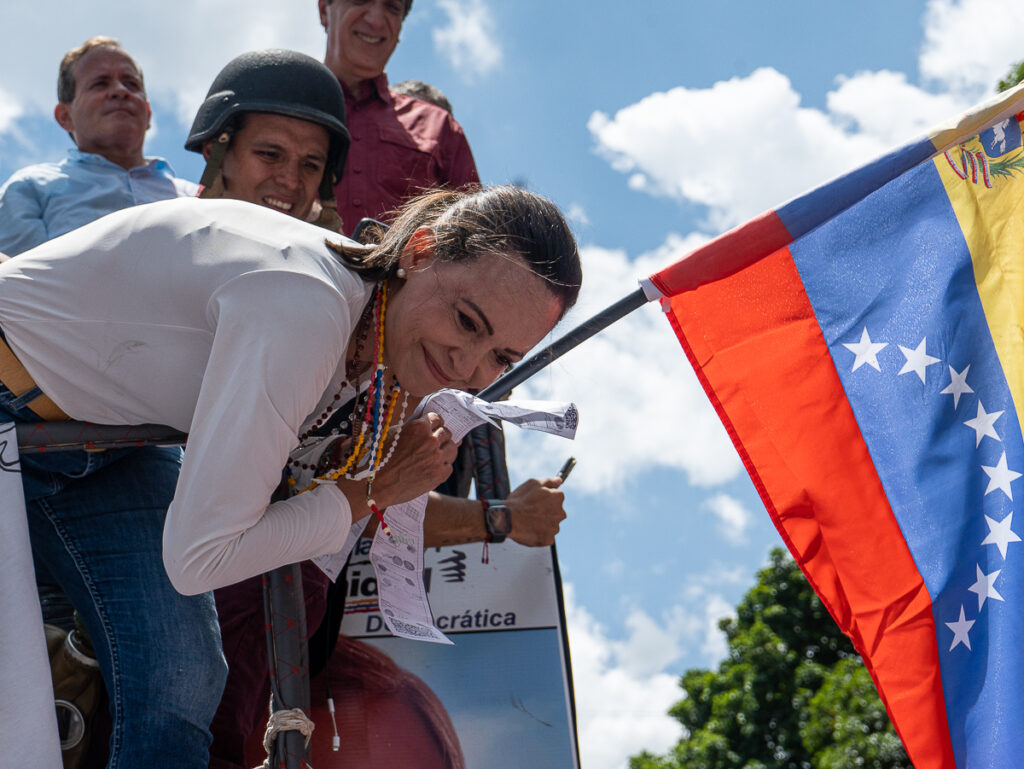 «La voz del pueblo y la decisión del pueblo se respeta; que el mundo y todos reconozcan que el presidente electo de Venezuela es Edmundo González Urrutia», dijo María Corina Machado desde el camión donde se trasladaba.