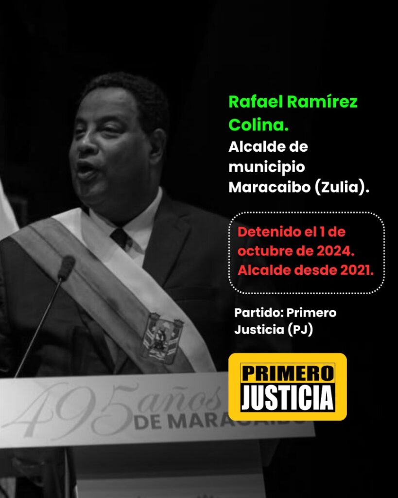 Dirigentes de Primero Justicia (PJ) también han recibido ataques por parte del gobierno venezolano desde antes del 28 de julio. Sin embargo, resalta la detención del alcalde de Maracaibo, Rafael Ramírez Colina, quien fue arrestado por funcionarios del Sebin el martes 1 de octubre por la noche.