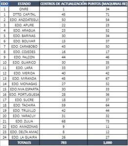 Sin embargo, el rector indicó que ordenó distribuir 130 máquinas adicionales en los estados Zulia, Miranda, Carabobo, Lara y Bolívar que tienen menos equipos en relación con su población.