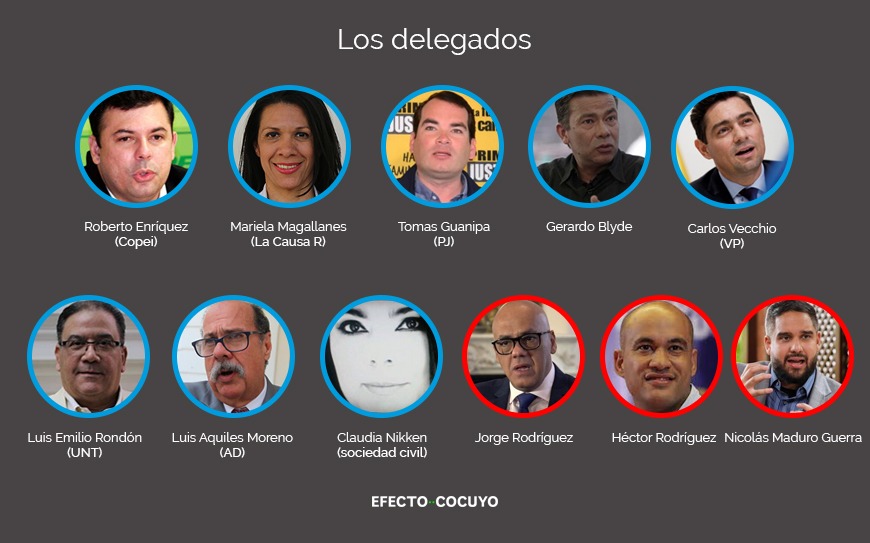 No se tiene detalles sobre quiénes acompañarán a Rodríguez; sin embargo, la delegación oficialista que participó originalmente en la negociación de México estuvo integrada por el diputado Nicolás Maduro Guerra, hijo del mandatario Maduro, y Héctor Rodríguez, quien tras ganar la gobernación de Miranda dejó de ser parte activa de este equipo.