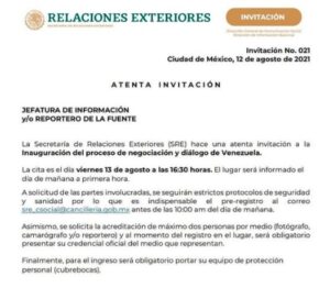 «Doy la más cordial bienvenida a México a las delegaciones que participarán en la inauguración del proceso de negociación y diálogo, y firma de memorando de entendimiento de Venezuela», escribió Ebrard en sus redes sociales sin más detalles.