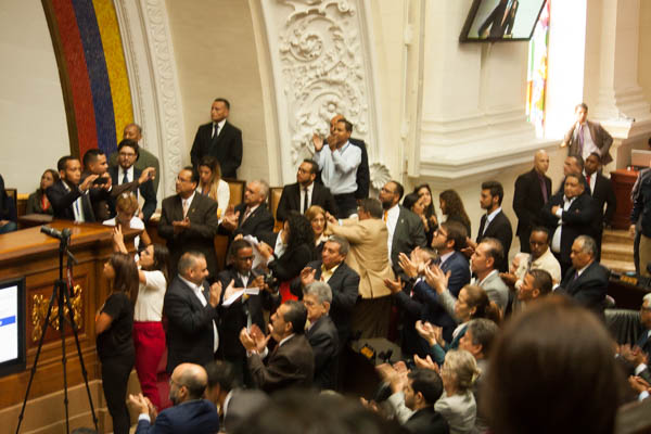 Diputados del Psuv, como Francisco Torrealba, llegaron al Palacio Legislativo acompañados de asistentes que coreaban: ¡La patria no se vende, la patria se defiende!.