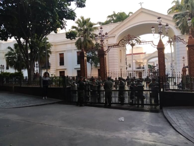 “Vamos a arriesgar una vez más el pellejo”, dijo Guaidó este lunes al informar que iría, junto a los diputados que lo reeligieron jefe del Parlamento, a sesionar. El orden del día tiene como punto único “rechazo de la toma y asalto militar al Palacio Federal Legislativo impidiendo el acceso a diputados en violación a la Constitución Nacional”.