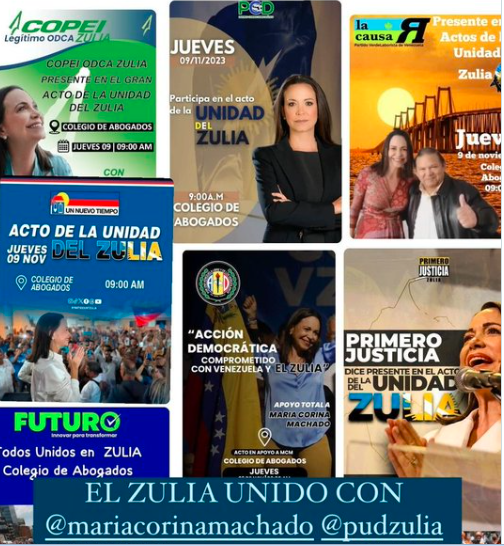 Ese mismo día, los partidos políticos, incluido el G3 (Acción Democrática, AD; Un Nuevo Tiempo, UNT; y Primero Justicia, PJ), otras organizaciones nacionales como Voluntad Popular (VP), Bandera Roja, La Causa R y Futuro con Henri Falcón y partidos regionales, celebraron un «acto de la unidad» en Maracaibo, estado Zulia, en apoyo a Machado.