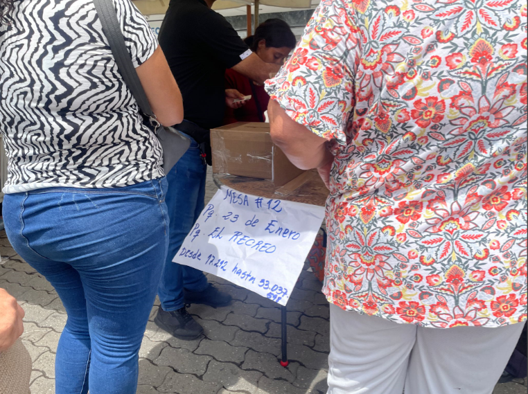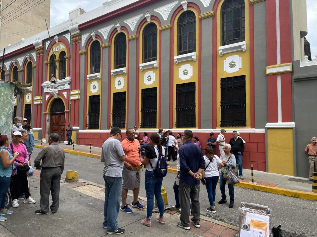 El centro de votación ubicado en la parroquia San Juan, donde más temprano robaron material electoral, lucía repleto poco después del mediodía del domingo. Las personas esperaban para ejercer su voto.