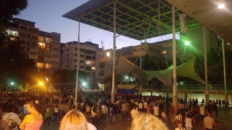 La emoción de aquel anacronismo en Chacao desembocó en las notas del Himno Nacional. Al terminar la entonación del público, gente aprovechó y se tomó fotos con la bandera gigante de Venezuela, ubicada en la pared de la tarima.