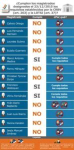 El Comité de Postulaciones Judiciales y la AN de entonces violaron un artículo de la Constitución (264), cinco de la Ley Orgánica del Tribunal Supremo de Justicia (38, 70, 71, 73 y 74), dos del Reglamento del propio comité (5 8 y 64) y «todos los principios y normas internacionales sobre independencia judicial, separación de poderes y democracia», según Acceso a la Justicia.