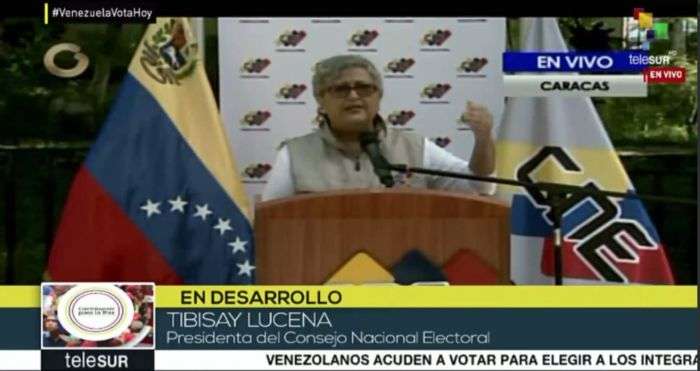 La presidente del Poder Electoral también informó que hubo “pequeños episodios” de violencia en el Distrito Capital en El Paraíso y en La Vega. Sin embargo, afirmó que la situación ya fue controlada y sugirió a los electores de estas zonas trasladarse a las parroquias Catedral, San Juan y Santa Teresa para participar en las elecciones a la Asamblea Nacional Constituyente.