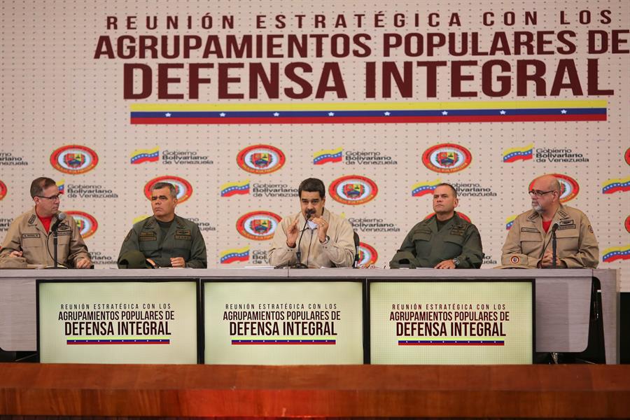 “Vamos a defender la ciudad desde adentro, desde el barrio, desde la montaña, desde el campo”, dijo Maduro en un acto de Gobierno realizado en la sede de la Academia Militar y transmitido por el canal estatal VTV.