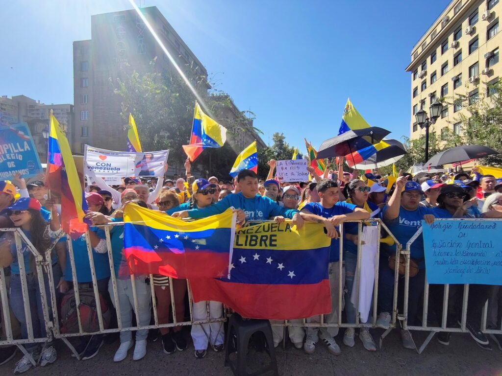 Machado se reunió con cientos de compatriotas en el sector de Paseo Bulnes con Parque Almagro, en pleno centro de la capital chilena. La concentración desbordó las calles con abrazos, lágrimas y banderas venezolanas.