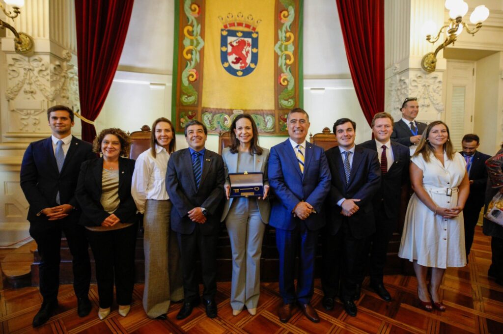 Machado recibió el reconocimiento como símbolo de su liderazgo en la defensa de la democracia y los derechos humanos. La visita se enmarca en su participación el día anterior en el cambio de mando presidencial en Valparaíso, donde ya había compartido momentos con venezolanos.