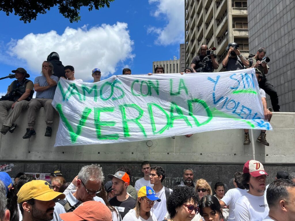 “No paremos, ya tenemos más de 84 % de las actas computadas. Son la prueba irrefutable e irreversible de que ganamos. Y no solo ganamos, ¡arrasamos! Hoy Venezuela tiene su presidente: Edmundo González; el mundo entero sabe lo que sabemos los venezolanos”, dijo ante las cientos de personas que acataron su llamado a una asamblea ciudadana.