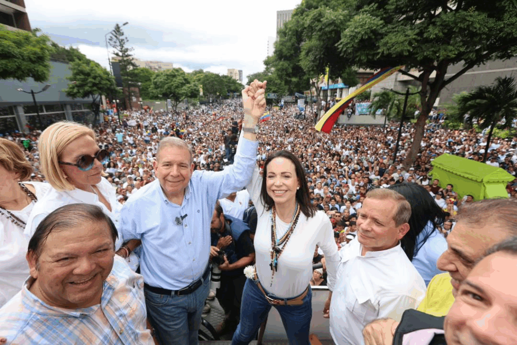 “La verdad es la verdad, y la vamos a defender hasta el final”, dijo Machado con firmeza, a lo que la multitud respondió al grito de “no tenemos miedo” y con el lema de su campaña, “hasta el final”. “Vamos a hacer que el régimen tenga que reconocer lo que el mundo entero sabe: Edmundo González Urrutia es nuestro próximo presidente. Se huele libertad en Venezuela”, recalcó.