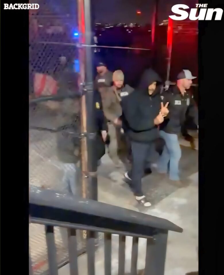 Horas después, cuando ya estaba en el Metropolitan Detention Center en Brooklyn, hay una nueva imagen de Maduro sentado y rodeado por agentes federales de Estados Unidos. Esta vez levanta sus dos manos y hace la señal de los dos pulgares hacia arriba.