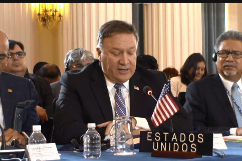 Pompeo que llegó más tarde del tiempo previsto para su participación, ante el retraso cedió su participación a Costa Rica que también se refirió a los casos de Venezuela y Nicaragua.
