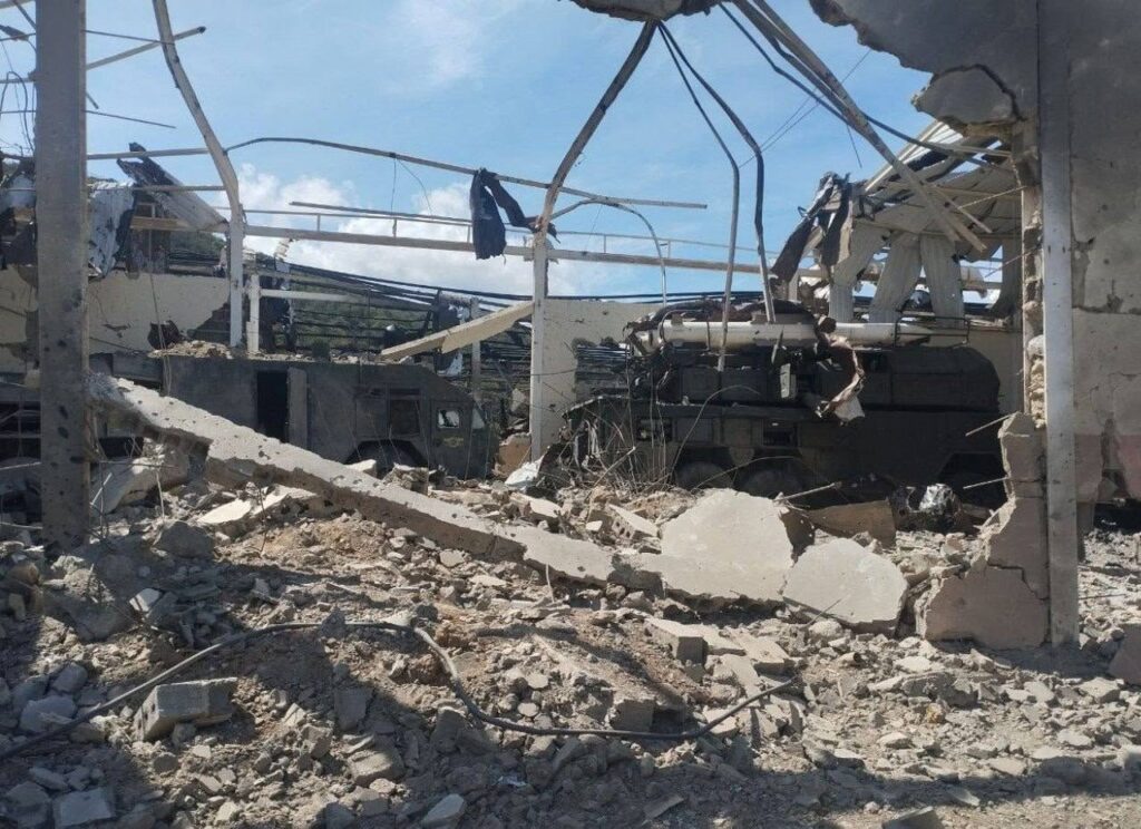 En videos que han sido divulgados en redes sociales, se pueden ver al menos cuatro sistemas antiaéreos dañados, que estaban guardados bajo un cobertizo. El impacto, no obstante, dejó algunos todavía reparables.