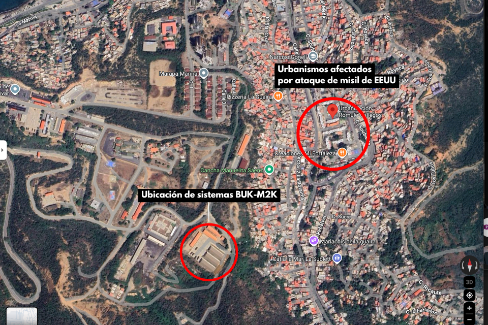 La evaluación de fotografías, videos, mapas e imágenes satelitales permite dar cuenta de cuáles fueron los objetivos puestos en la mira, y por qué, además incorporando evidencias audiovisuales de la misma madrugada –registradas por habitantes de distintos sectores–, que coinciden en algunos casos con las exposiciones de armas de defensa que la propia administración de Nicolás Maduro hizo durante 2025.