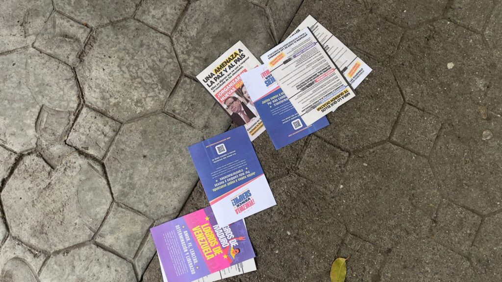 Mientras tanto, en el liceo Andrés Bello los jefes de calle pasaban listas de ciertas personas que pertenecían a algunas parroquias del municipio Libertador. Así como ha ocurrido en elecciones previas, el chavismo instaló puntos a escasos metros de los centros de votación. A estos lugares acudían las personas luego de haber participado en el simulacro. Se anotaban en una lista y recibían propaganda en favor de Nicolás Maduro.