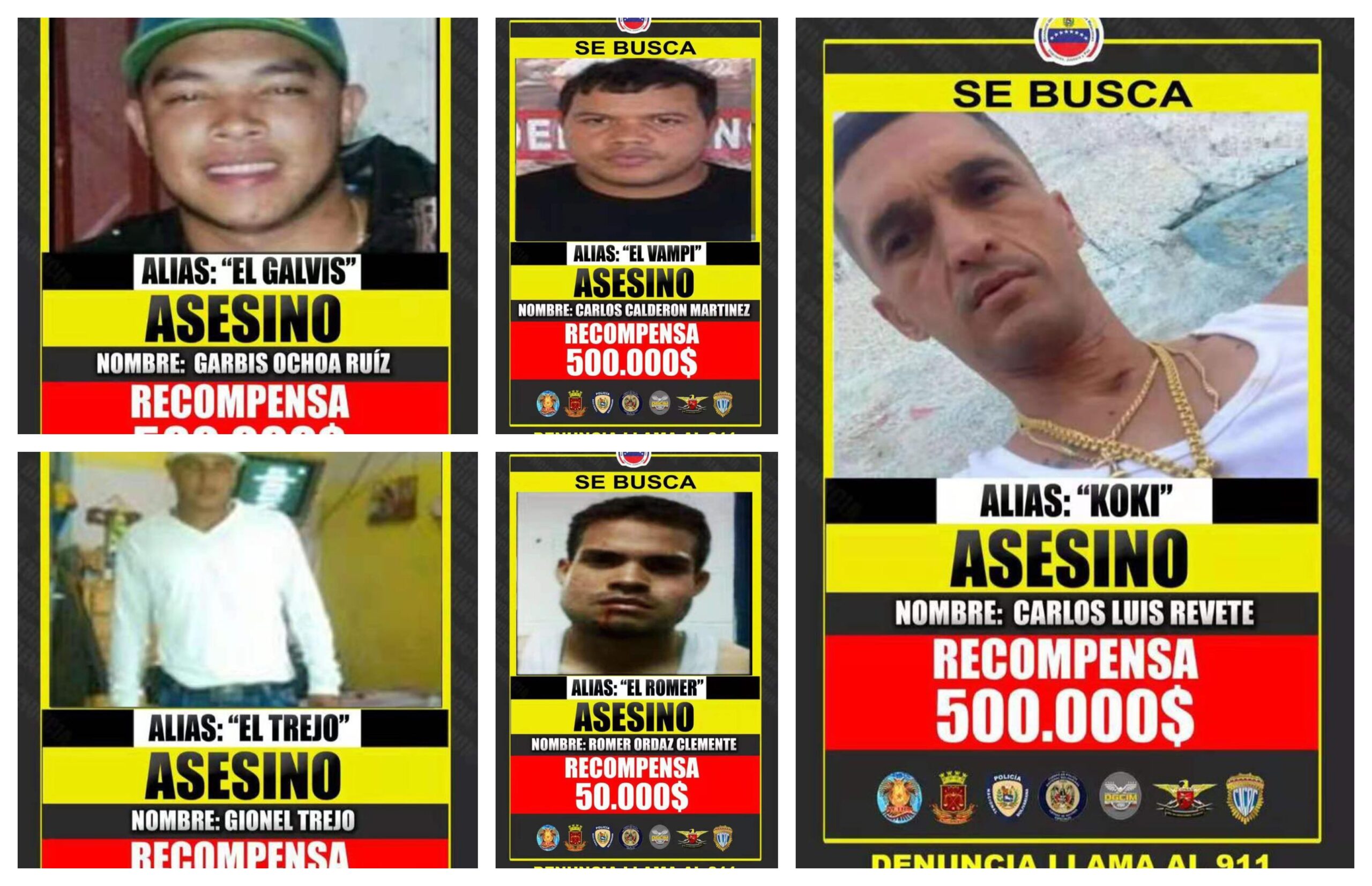 Por el líder de la banda que controla las inmediaciones de la llamada Cota 905 (avenida Guzmán Blanco de El Paraíso) la recompensa es de 500 mil dólares estadounidenses, lo mismo que por sus «colegas» Carlos Calderón Martínez (alias Vampi) y Garbis Ochoa Ruiz (conocido con el remoquete de el Galvis).